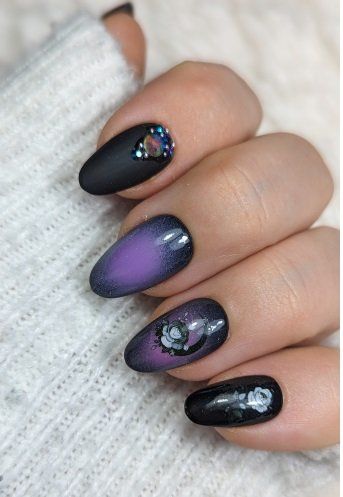 Amande courte, aurore violette, Lune, rose noir, bijoux d'ongle
